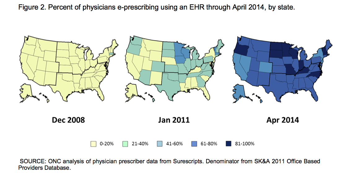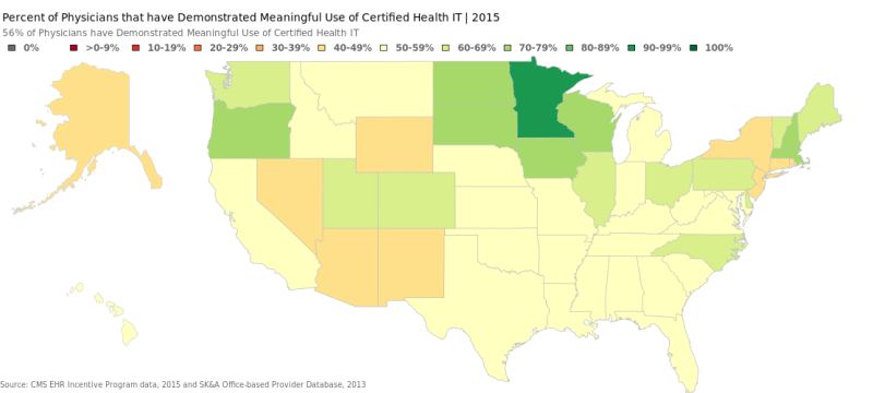 Since 2011, a federal program known as Meaningful Use has offered doctors and hospitals financial payments to adopt electronic records. In it's present form, physicians are now beginning to face penalties for not using digital records. As a result, over 50% of practices are using electronic records.